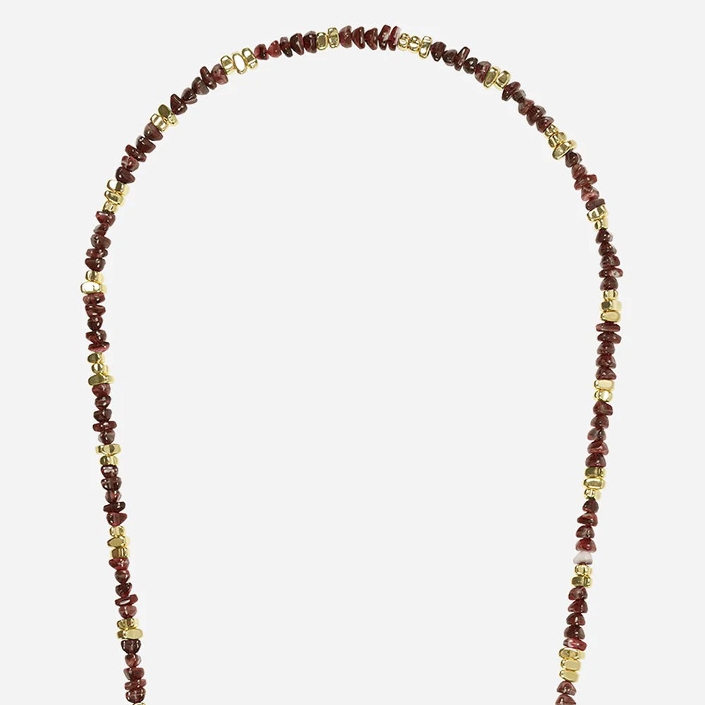 Featured here in brown beads and 24carat plated gold beads with gold carabiners.