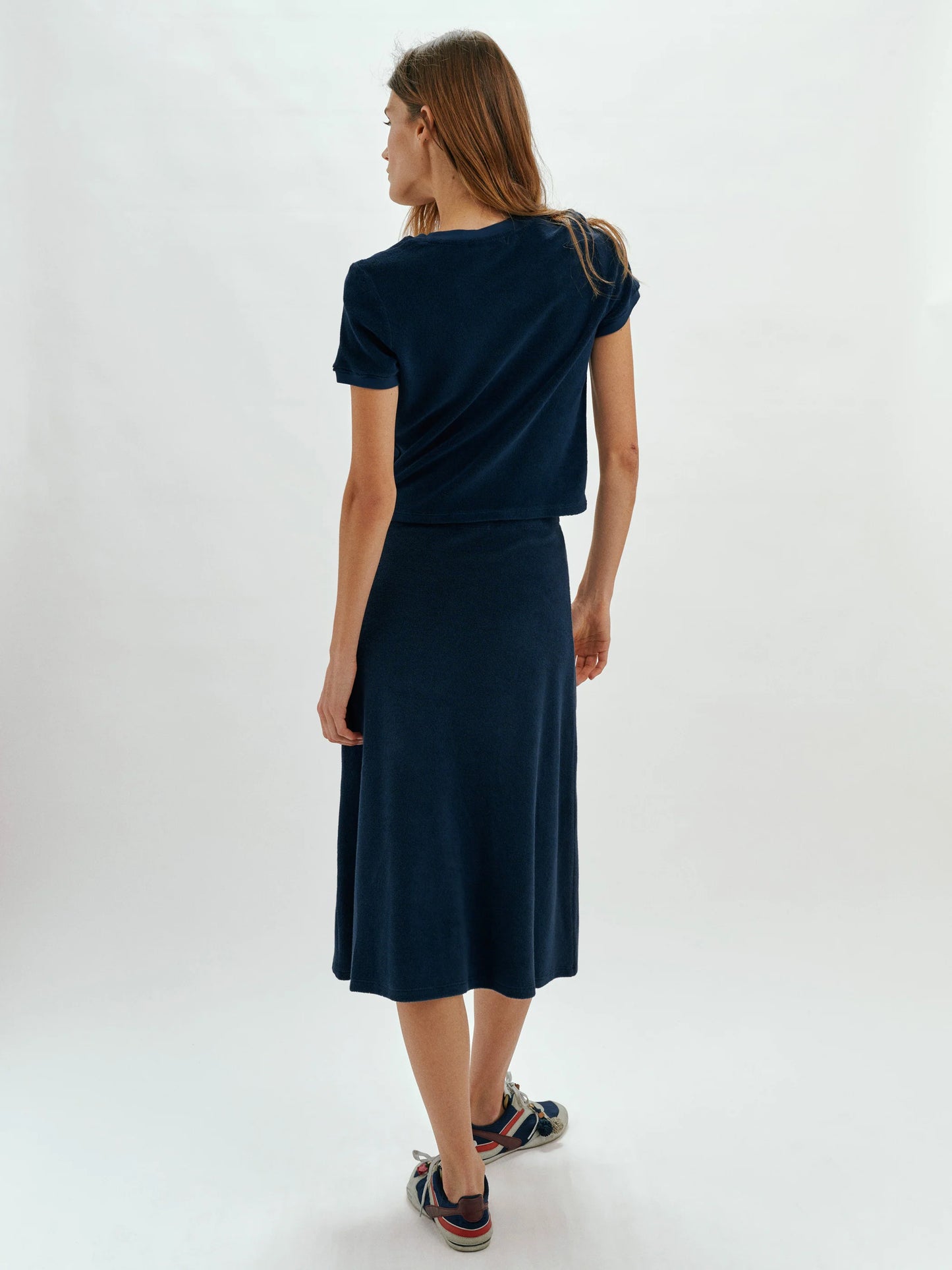 Pairing the polish of a midi skirt with the ease of versatile terry, the Sienna Skirt is an instant wardrobe essential.