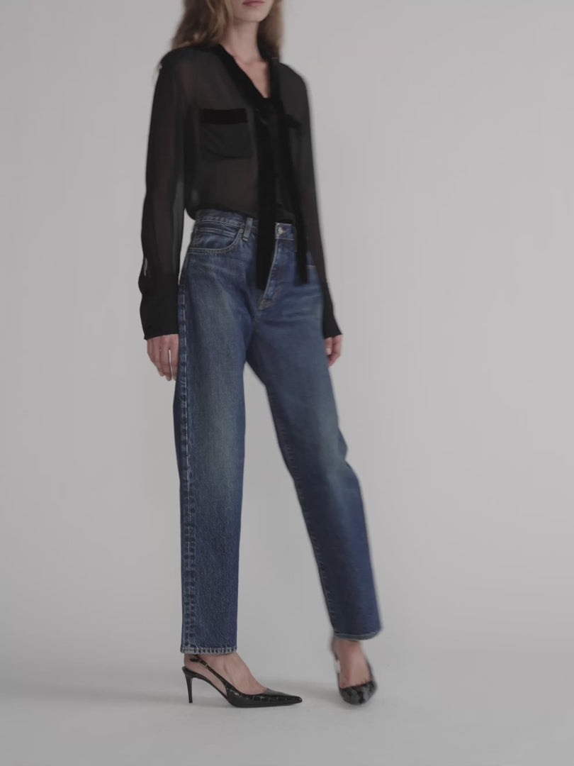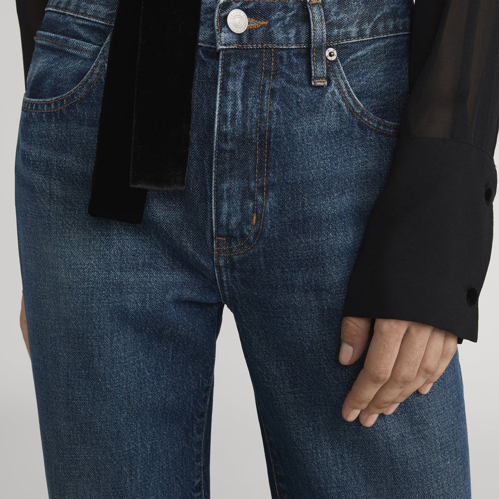 A cleaned-up rendition of a relaxed jean, this straight-leg pair "hangs" from a mid-rise waist with just enough room through the hip and thigh for a fluid fit and feel. A tailored yet effortless jean that strikes the perfect balance.