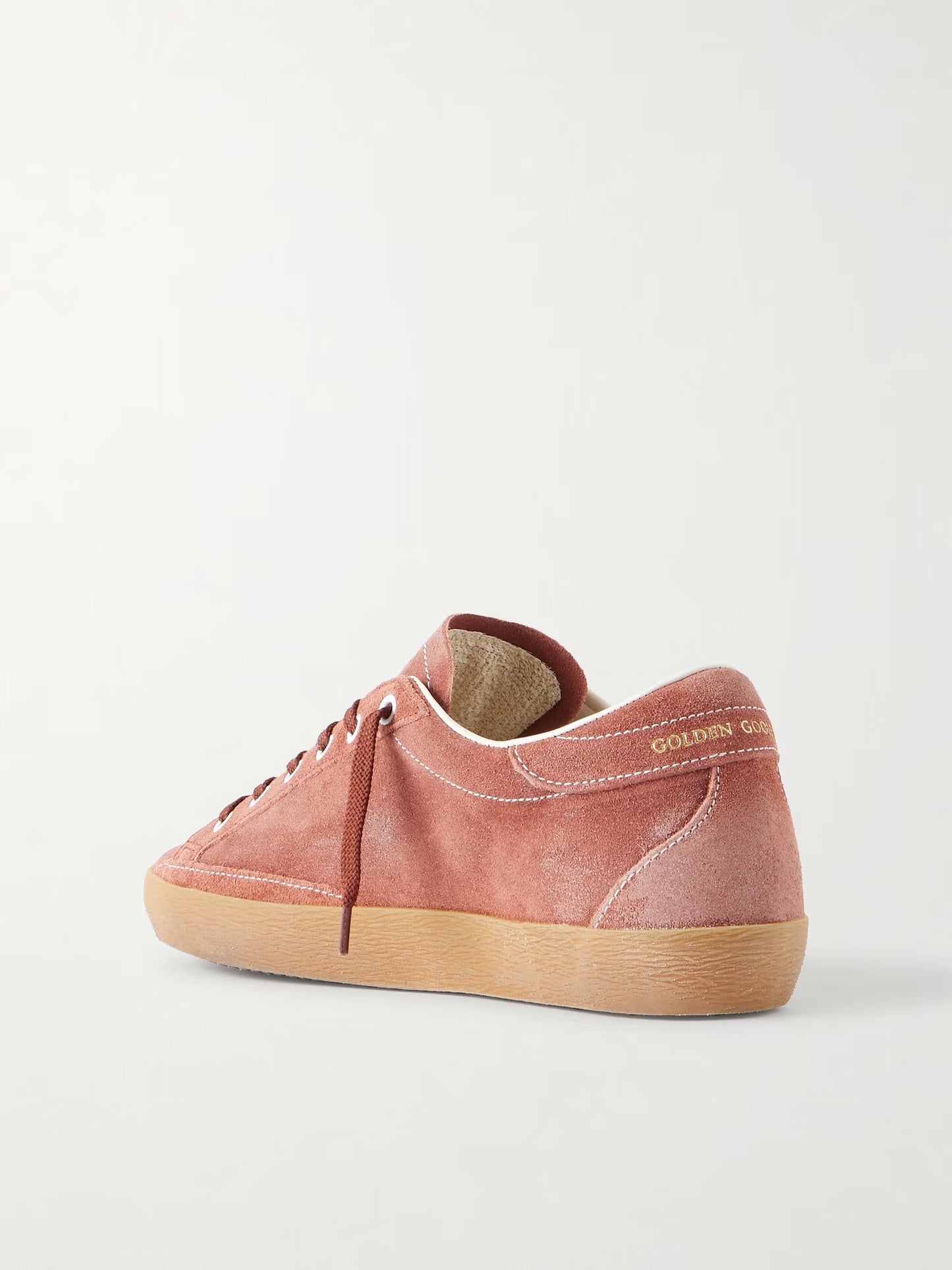 Golden Goose's 'Super-Star' sneakers are beloved for their craftsmanship and artful distressing. This low-profile pair is made from waxed suede in a red-rust colour with a white leather star and has branding on the sidewalls.