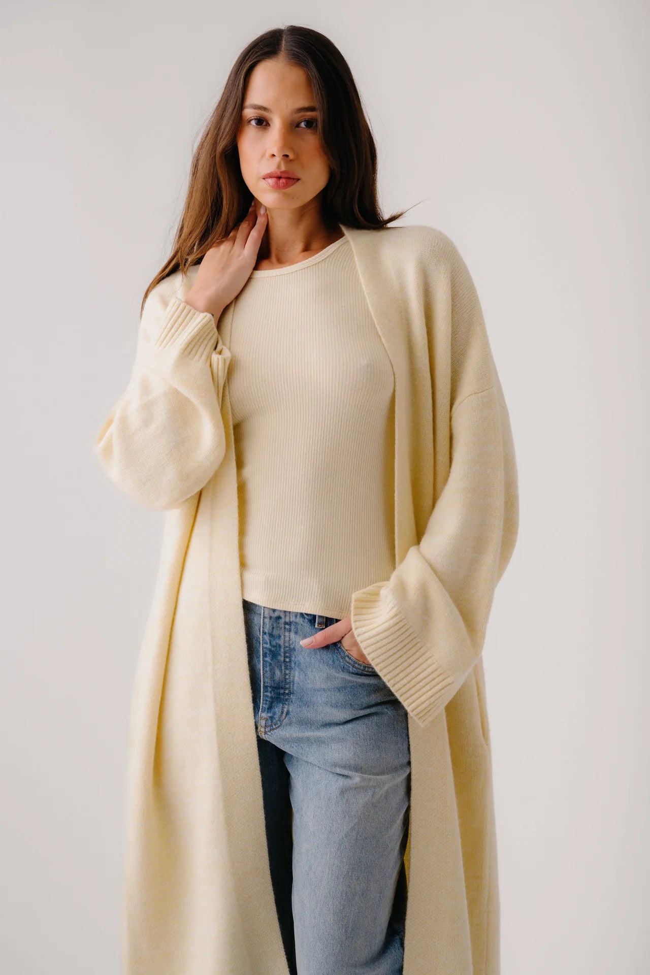 A slouchy duster in 100% Cashmere.