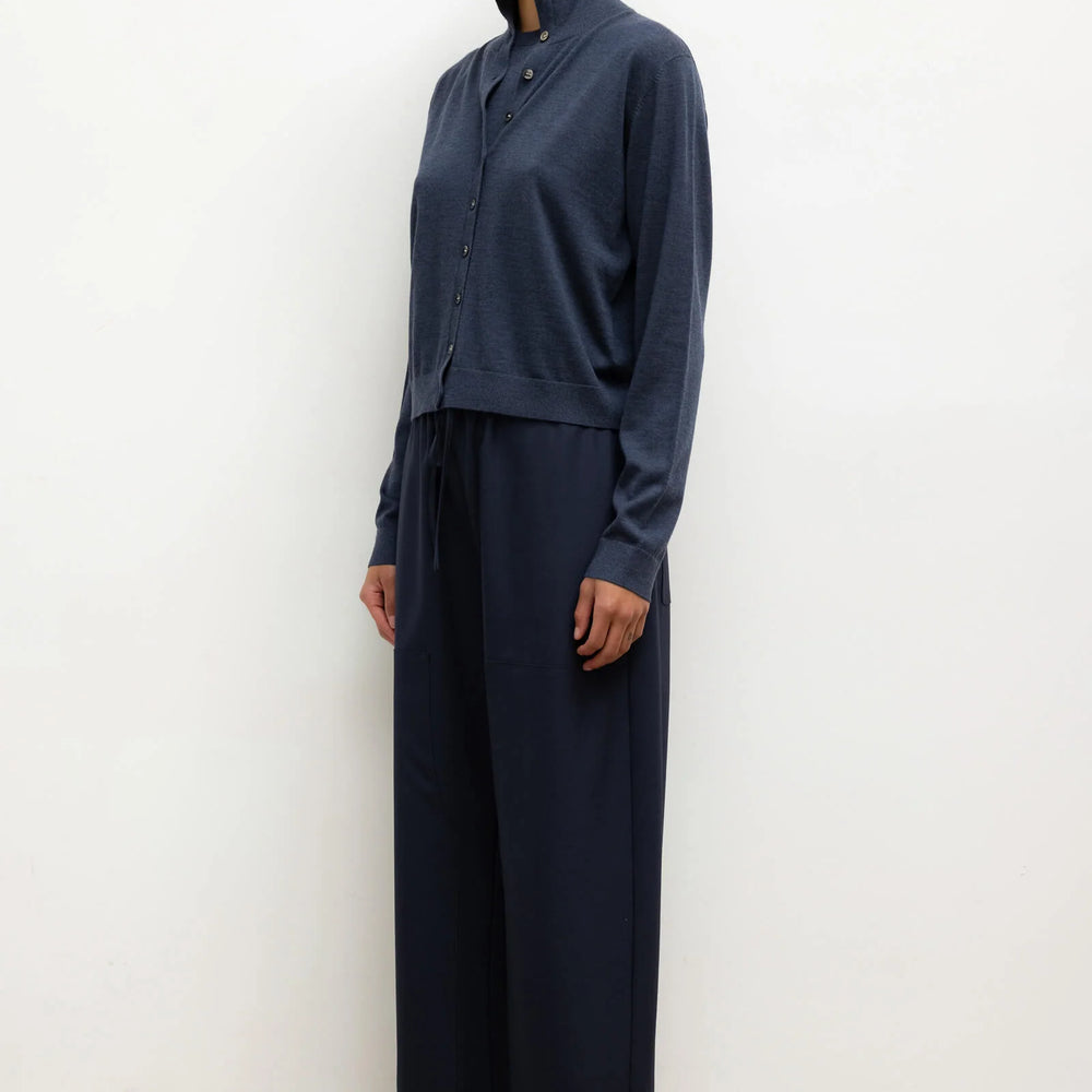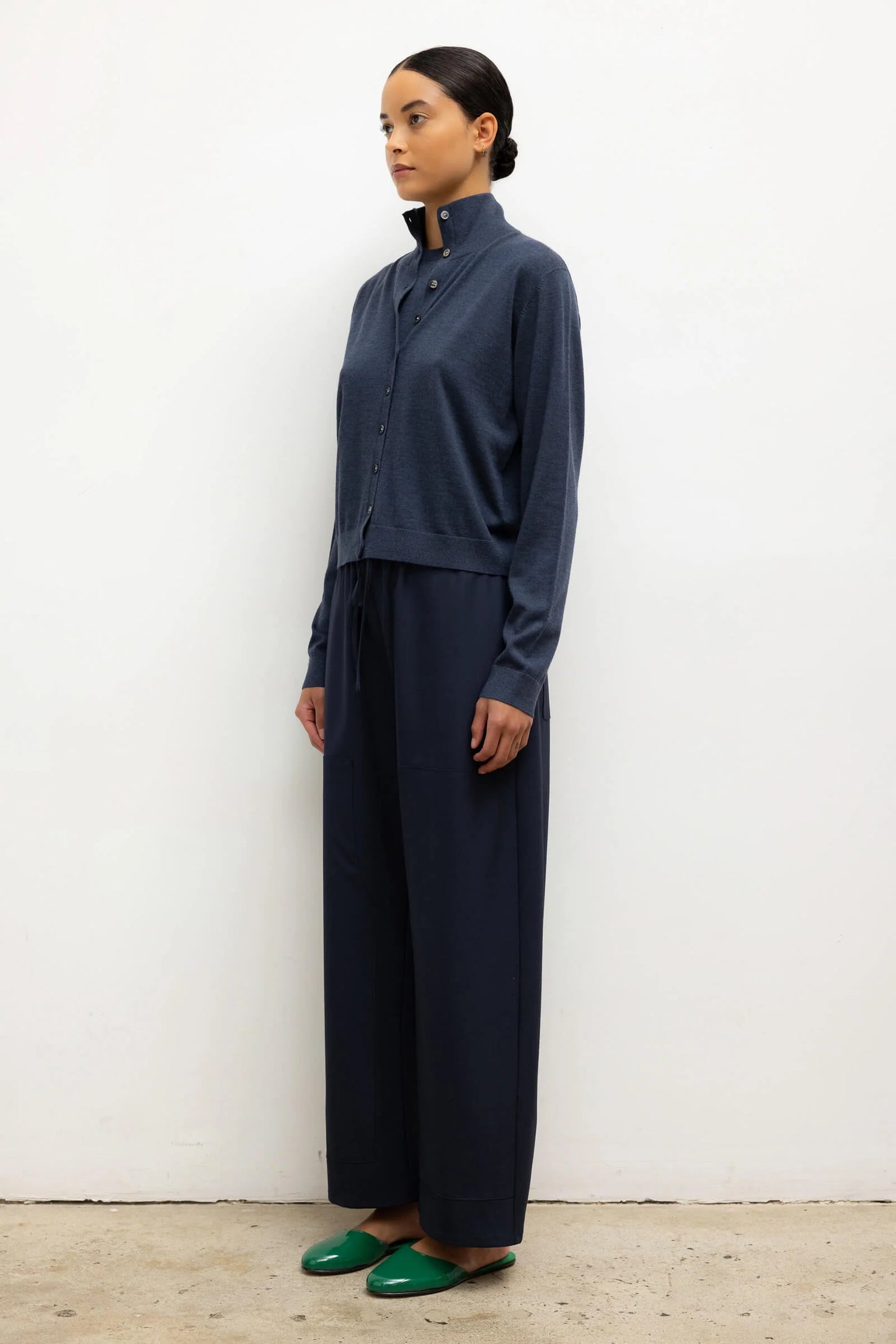 Knit in Italian-crafted merino wool, the James Mock Neck Cardigan features a flexibly styled mock neck, button front closure and delicate ribbed finishing. Make it a matching twin set with the James Sleeveless Crew.