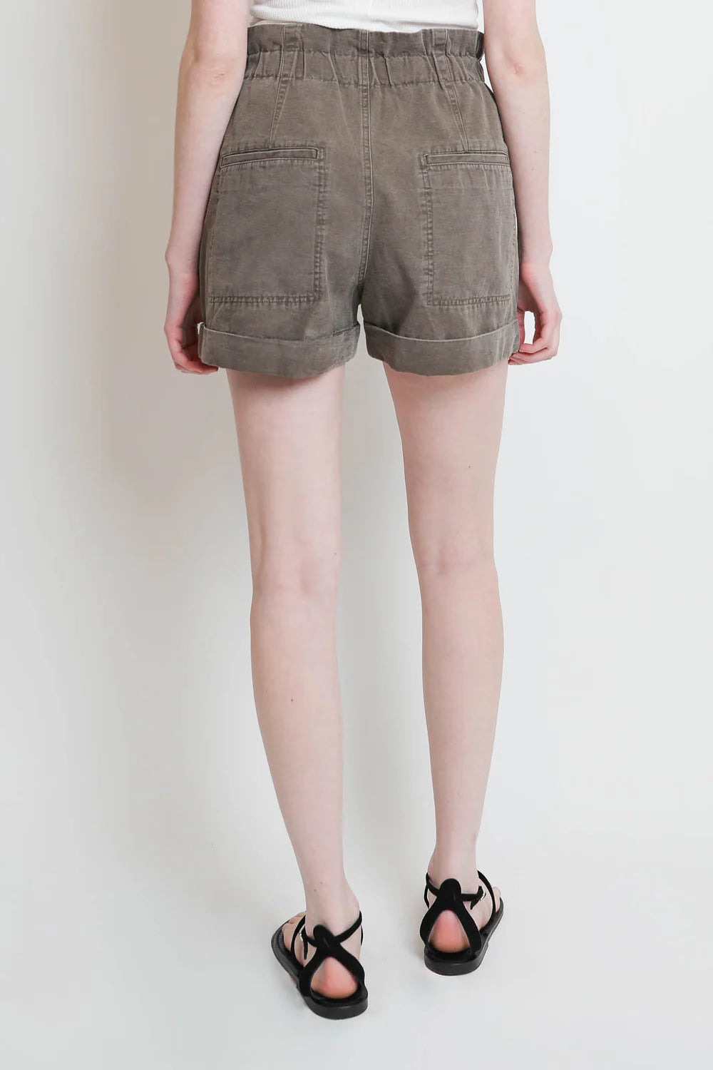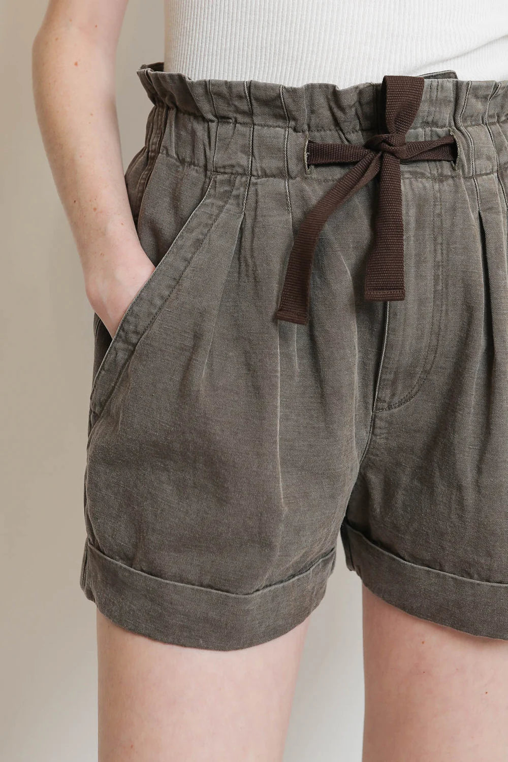 Dark bronze shorts finished with a zip fastening and drawstring.