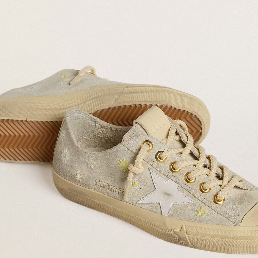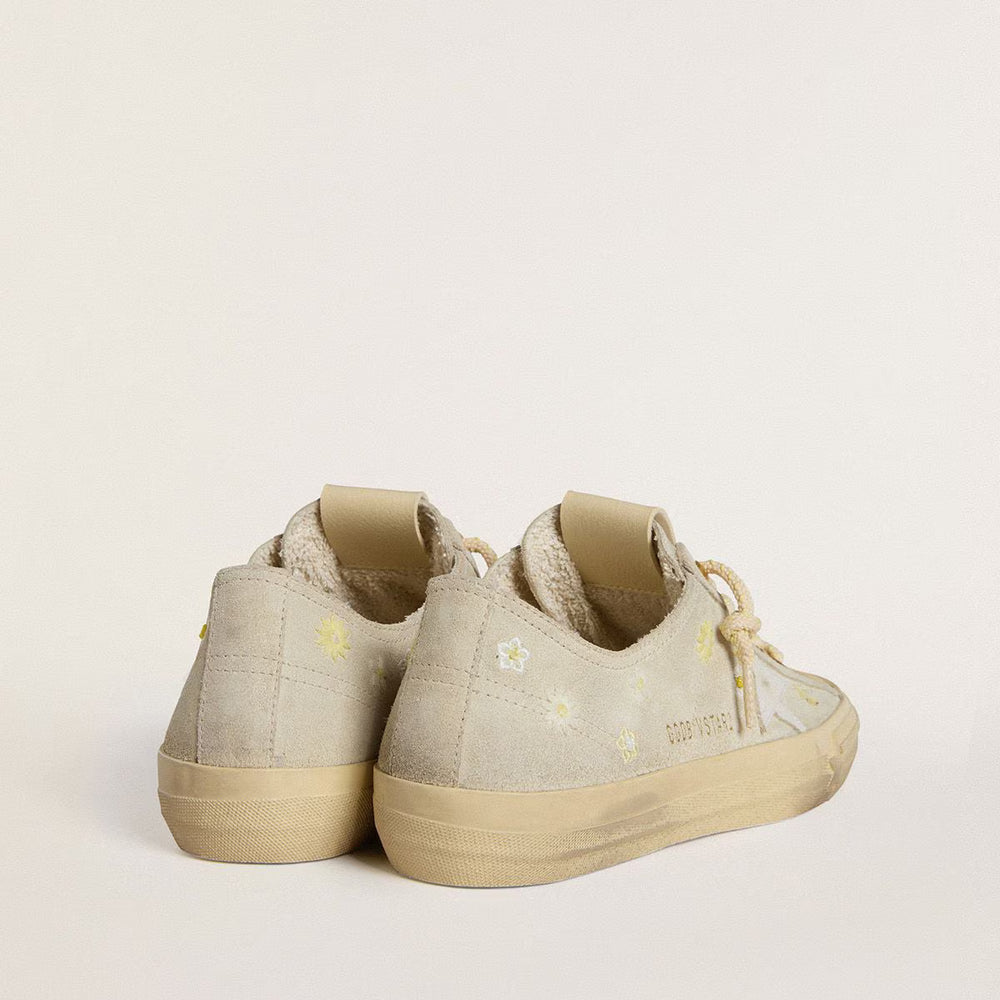 Beauty that lies in simplicity: in the V-Star sneakers, an essential shape meets stylish detail. This model with an ice-gray suede upper features a white leather star and floral daisy embroidery. The beige laces and gold rivets add a stylish finishing touch.