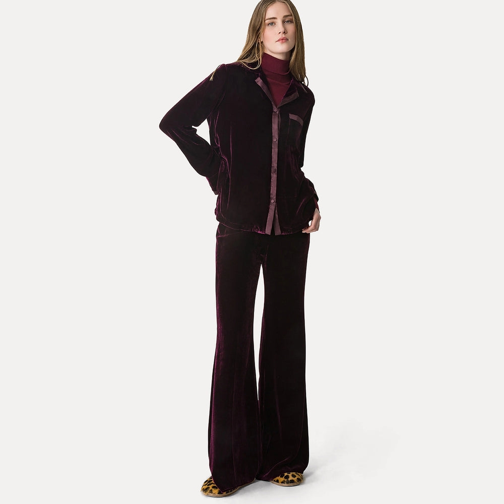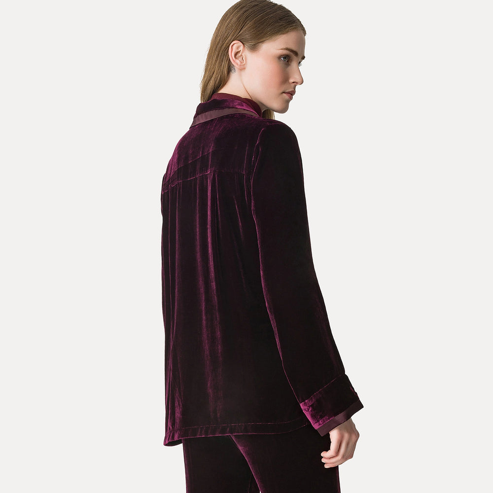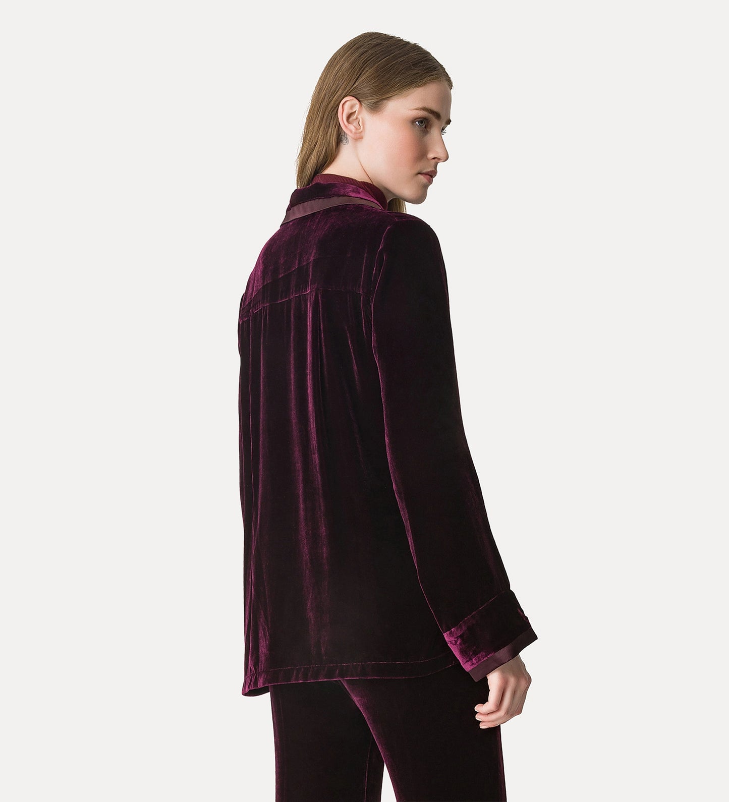 Packed with casual allure, this plain velvet shirt with a relaxed fit and satin detailing is meant to enliven the cold season with sensual allure and exquisite detailing. The vents on the bottom hemline and satin - trimmed patch pocket usher in an informal vibe. This garment was designed to softly caress the skin.