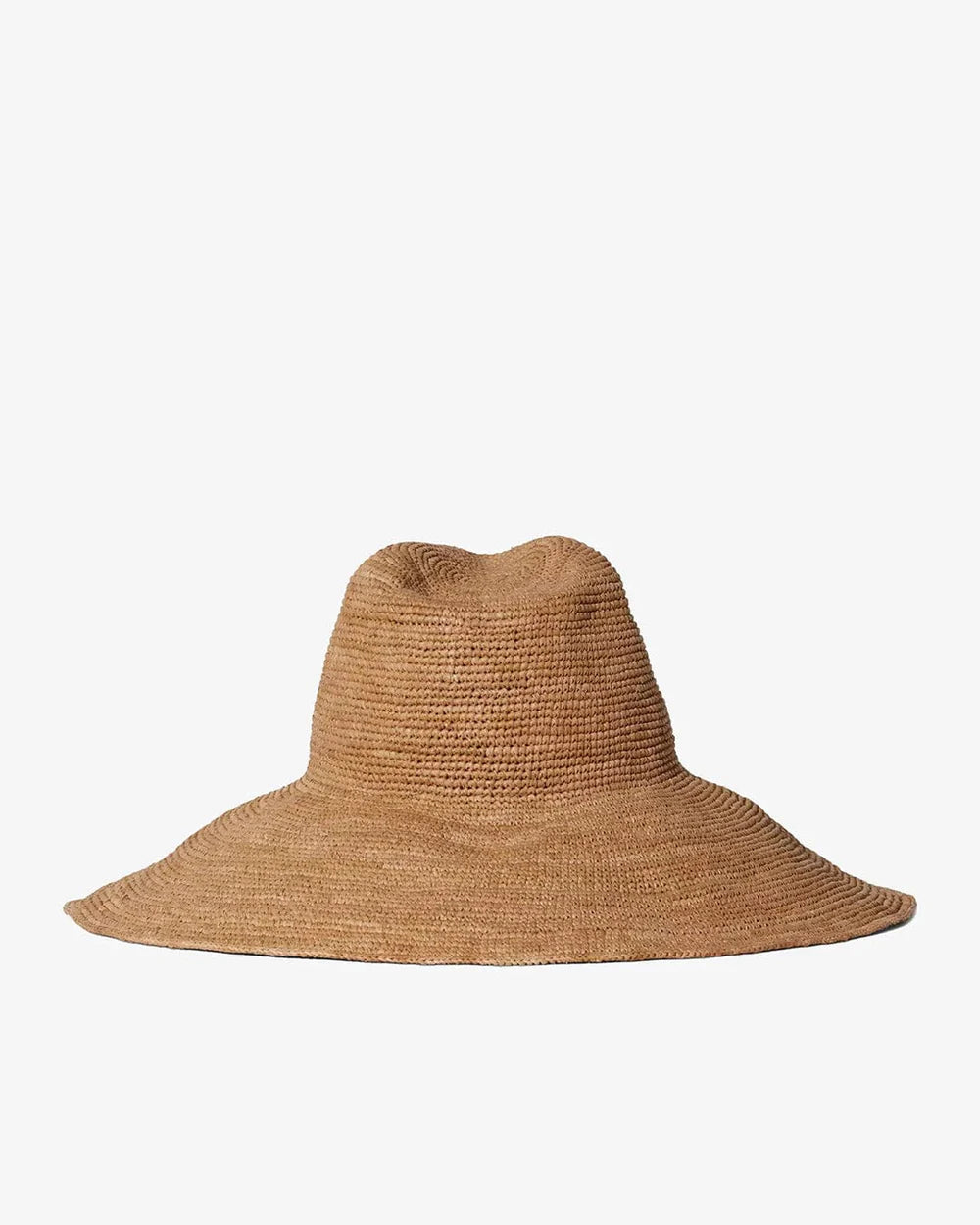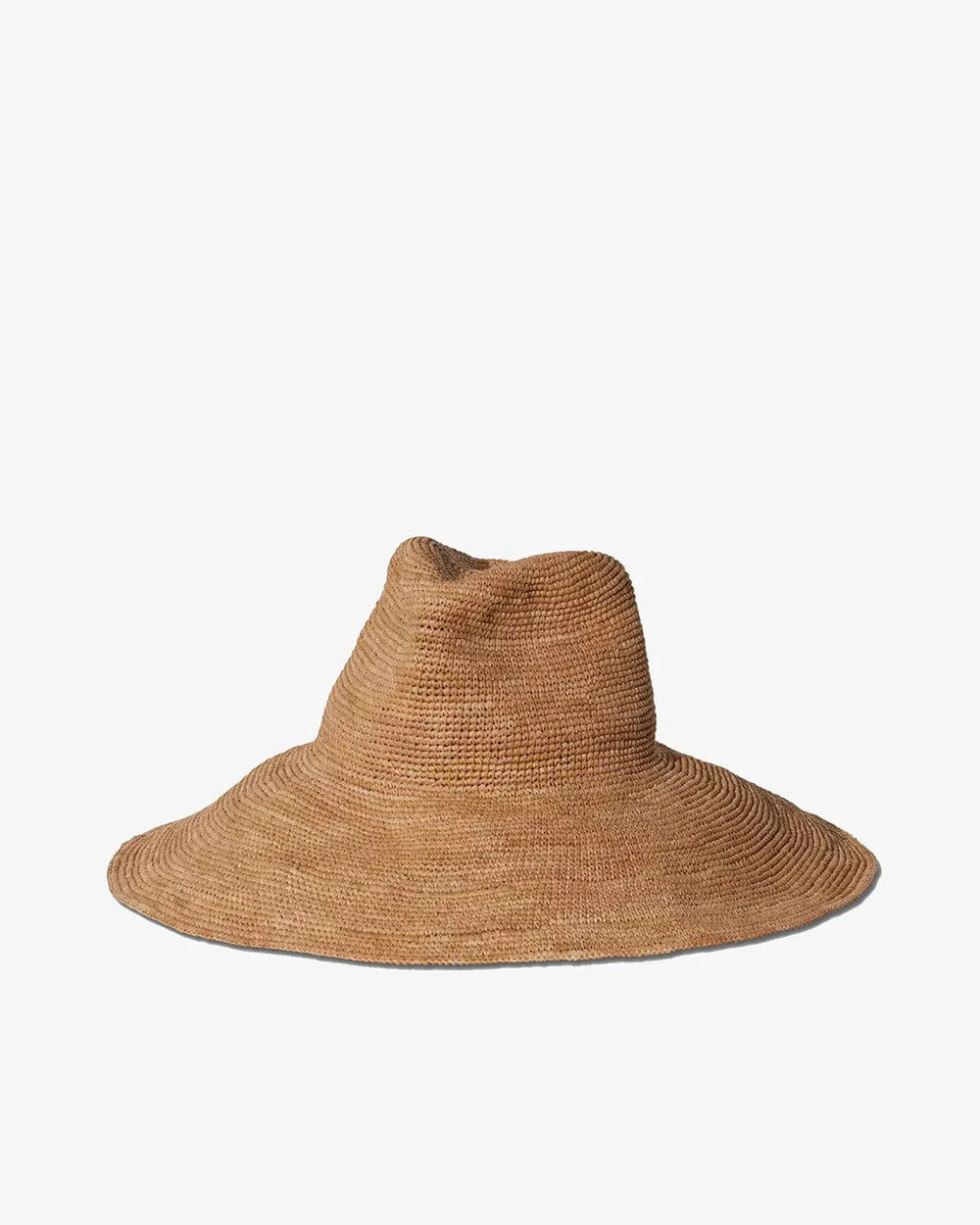 Waverly, a wide-brimmed hat, is expertly crafted from durable, packable raffia straw. Its wire-infused brim and crown offer structural flexibility, allowing you to customize the shape effortlessly.