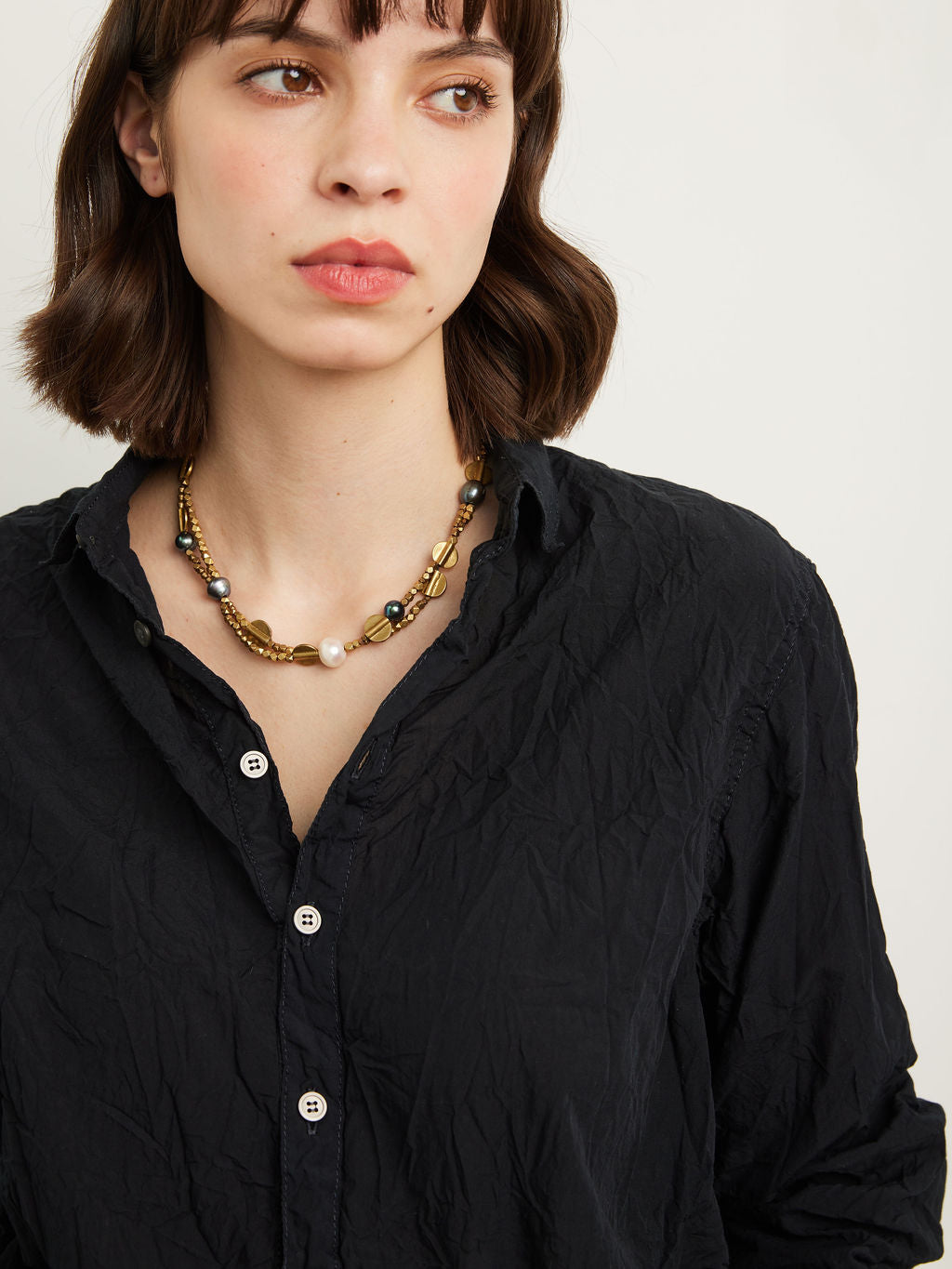 Natural materials are harmoniously composed into a comfortable wearable collection.