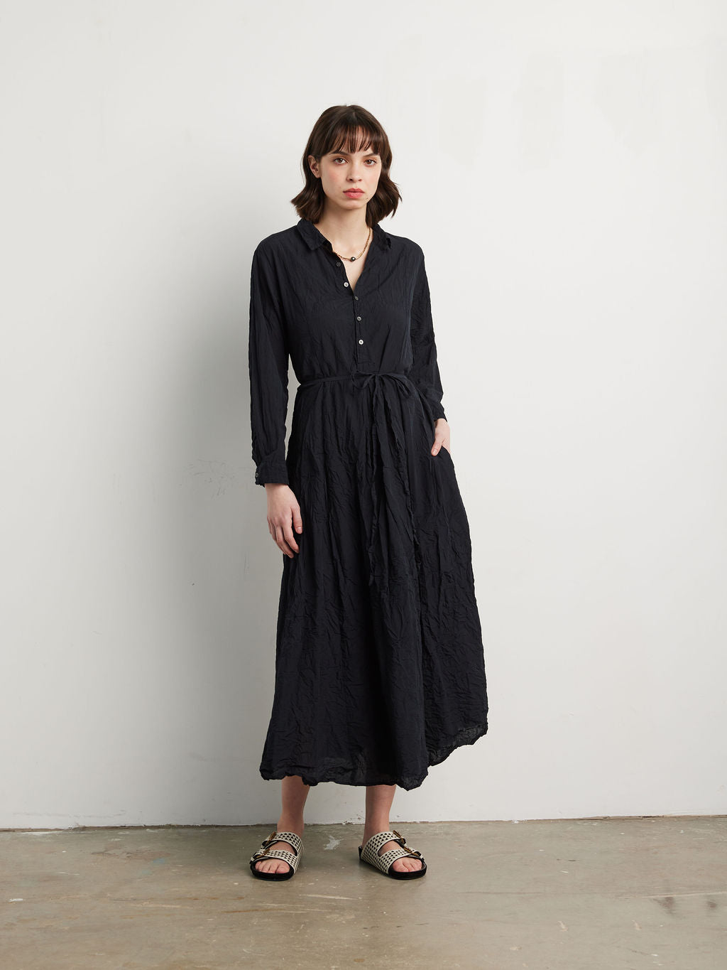 Crinkle Dress - Navy