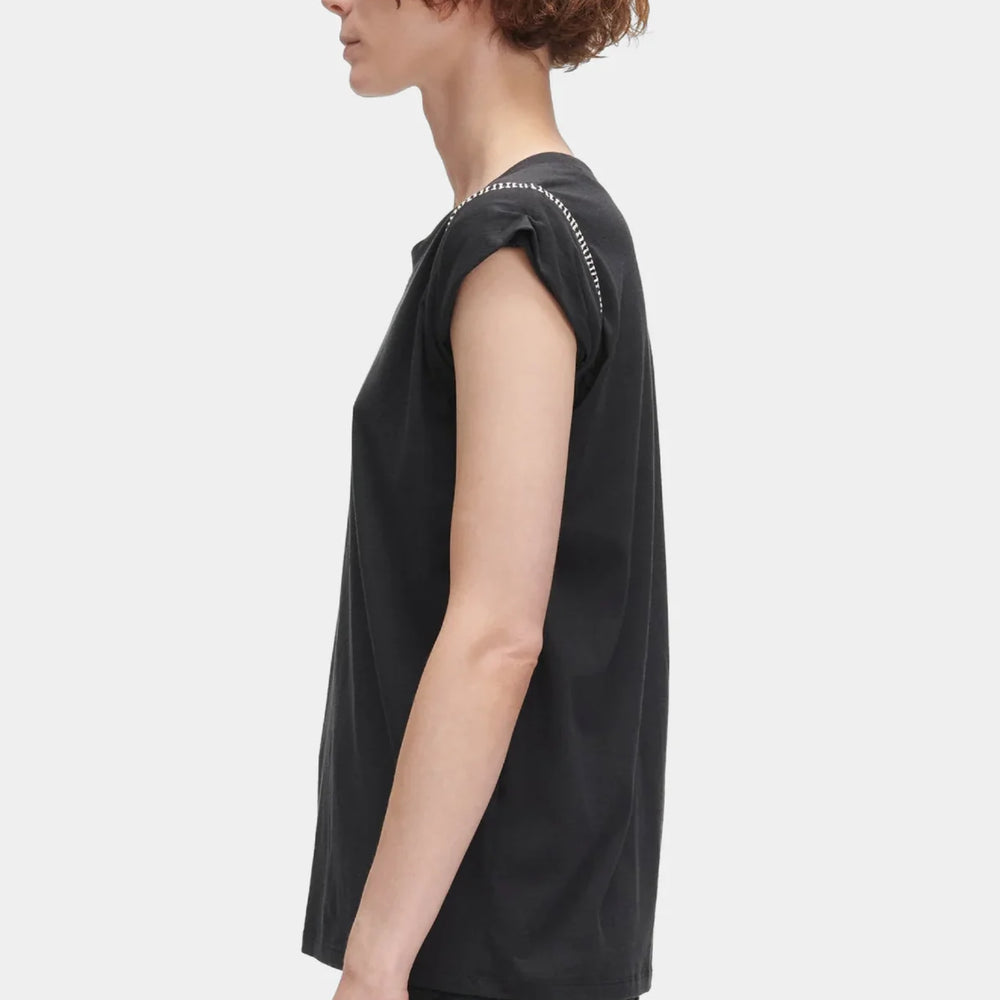 The perfect soft crewneck T-shirt with a permanently rolled-up sleeve and hand crochet stitch detail in a relaxed fit. An RC core style.